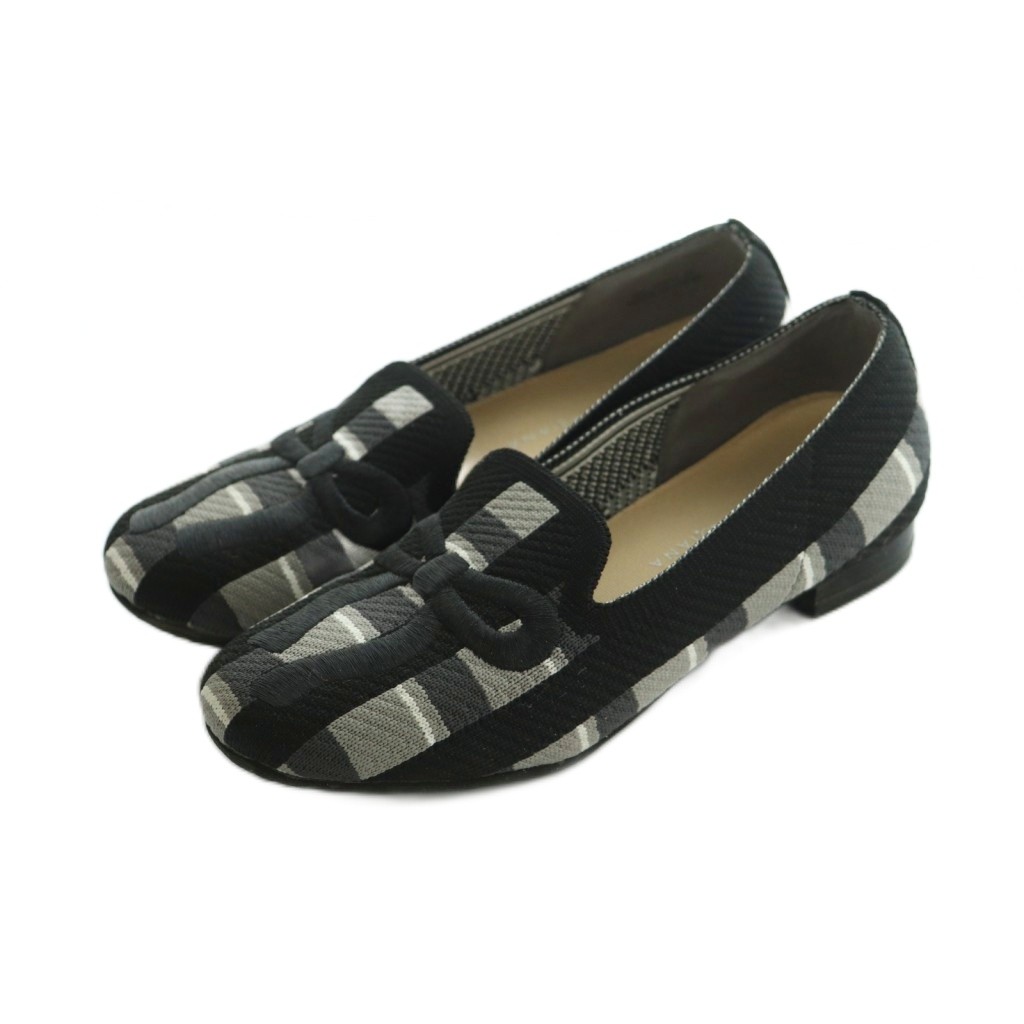ダイアナ DIANA クムウ ダイアナ CUMUU_DIANA オペラシューズ チェック リボン刺繍 22.0cm 黒 グレー /MI ■OS レディース