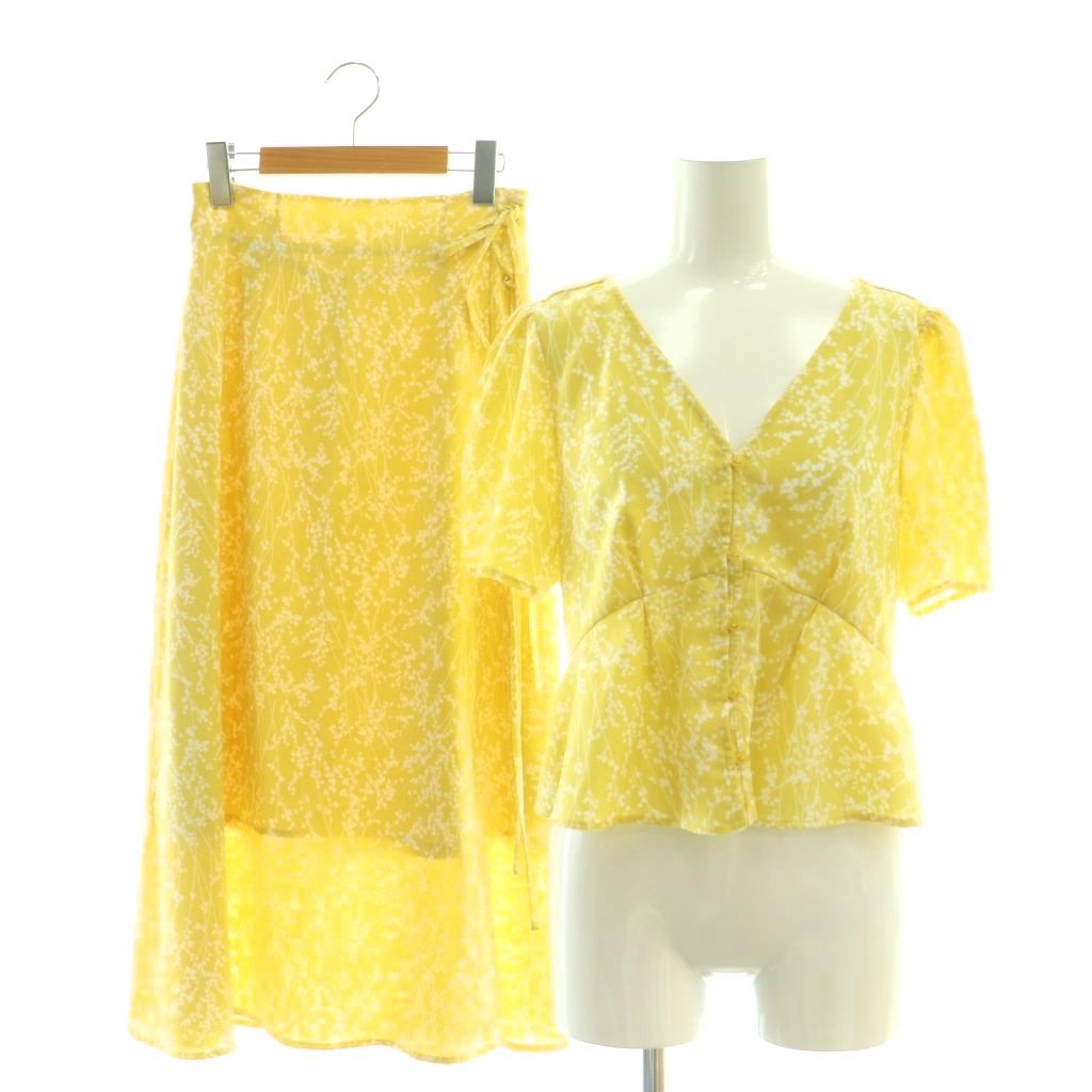 スナイデル SNIDEL セットアップ 上下 ブラウス 半袖 Vネック スカート ロング フレア 花柄 1 黄色 白 /NR ■OS レディース