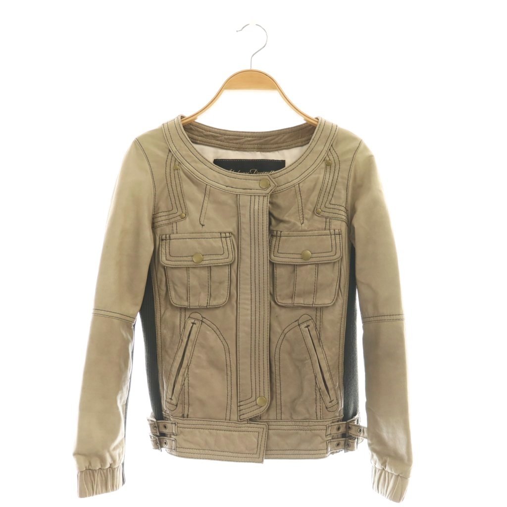 アバハウス ドゥヴィネット リュクス ラムレザーノーカラージャケット 1 ベージュ チャコールグレー /DO ■OS レディース