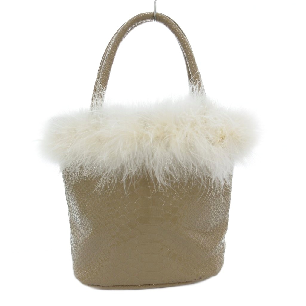 ザヴァージンズ theVirgins バニティバッグ ハンドバッグ エナメル クロコ型押し フェザー ベージュ /AE レディース