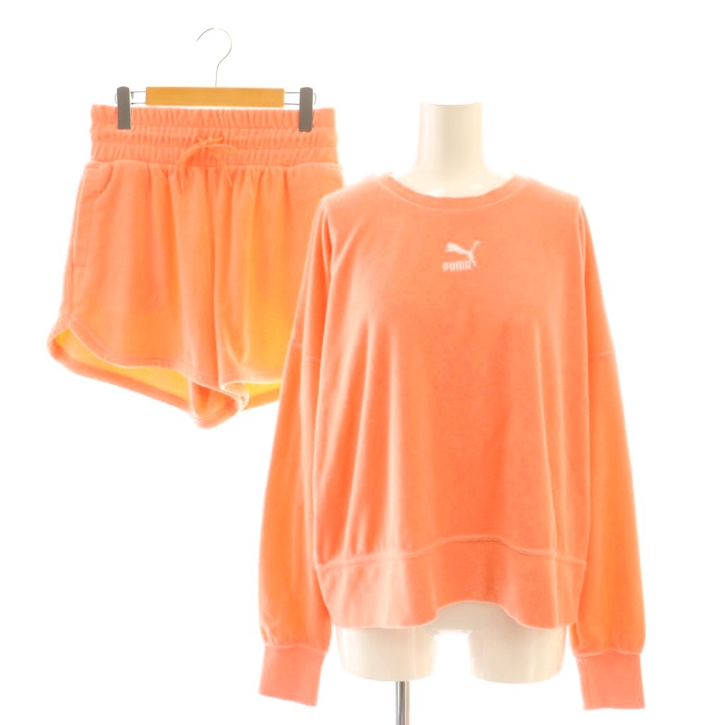 プーマ PUMA パイルプルオーバー×ショートパンツ セットアップ 上下 カットソー M ピンク /AT ■OS レディース