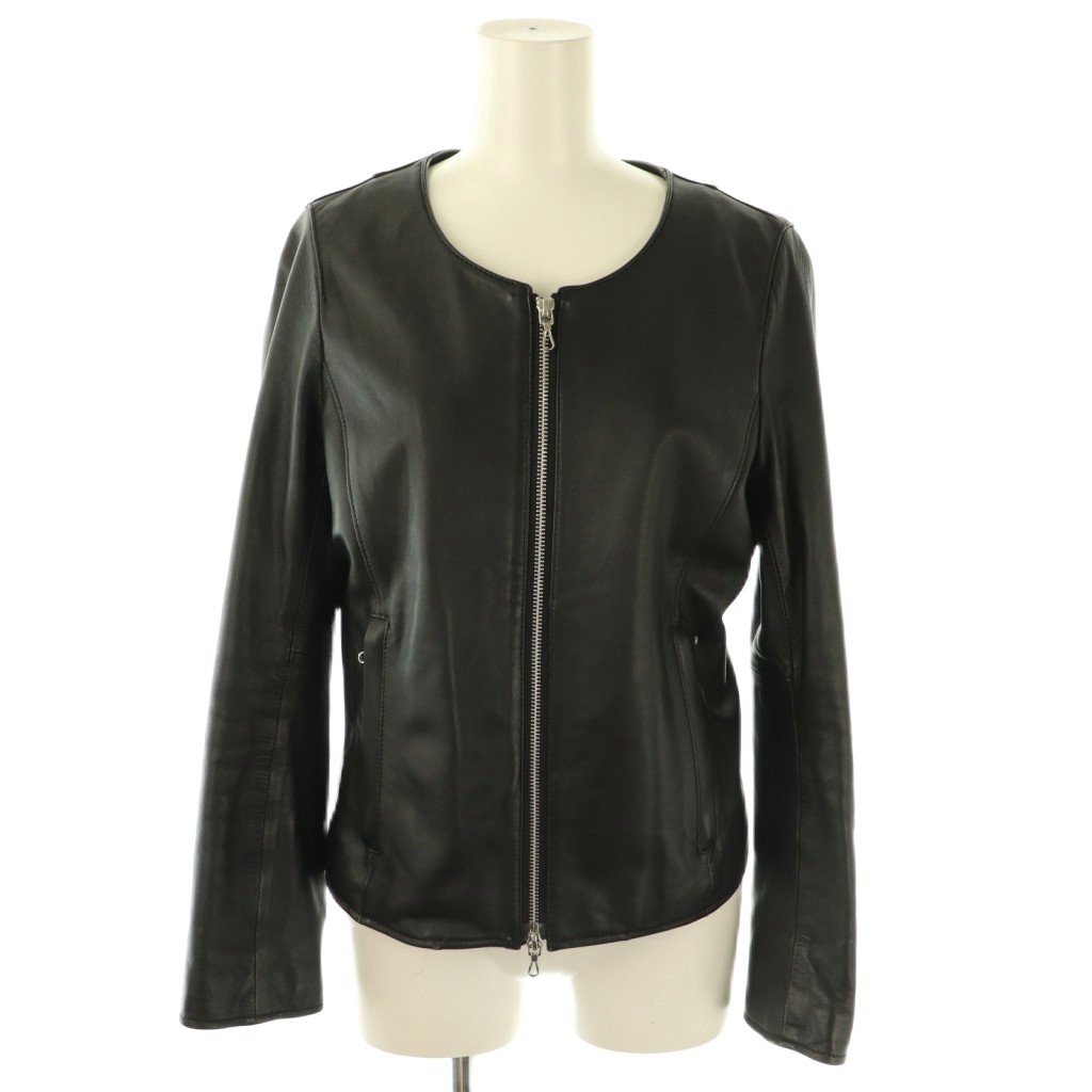 ナノユニバース nano universe ノーカラーレザージャケット 革ジャン シープスキン 38 黒 ブラック /AT ■OS レディース