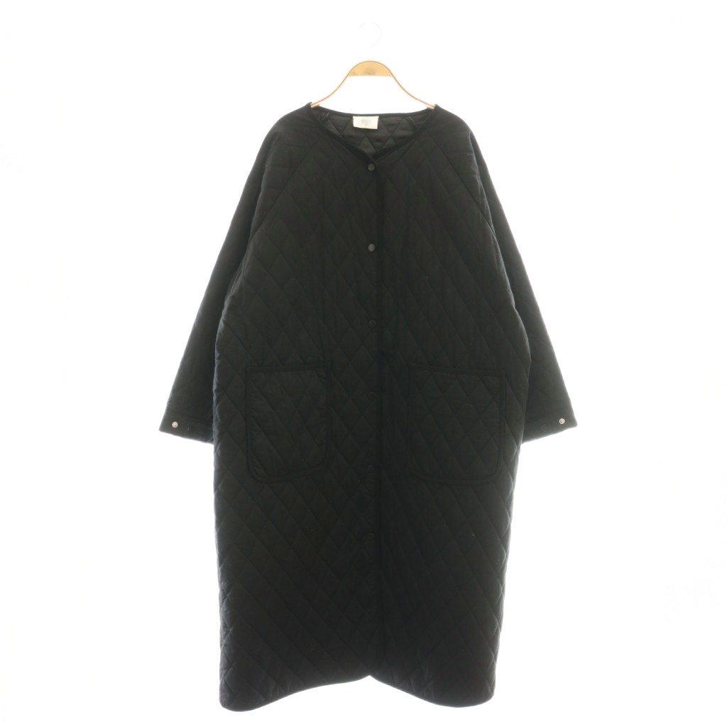 ハグユー HUG.U キルティングコート ノーカラーコート パイピング F ブラック /DF ■OS レディース