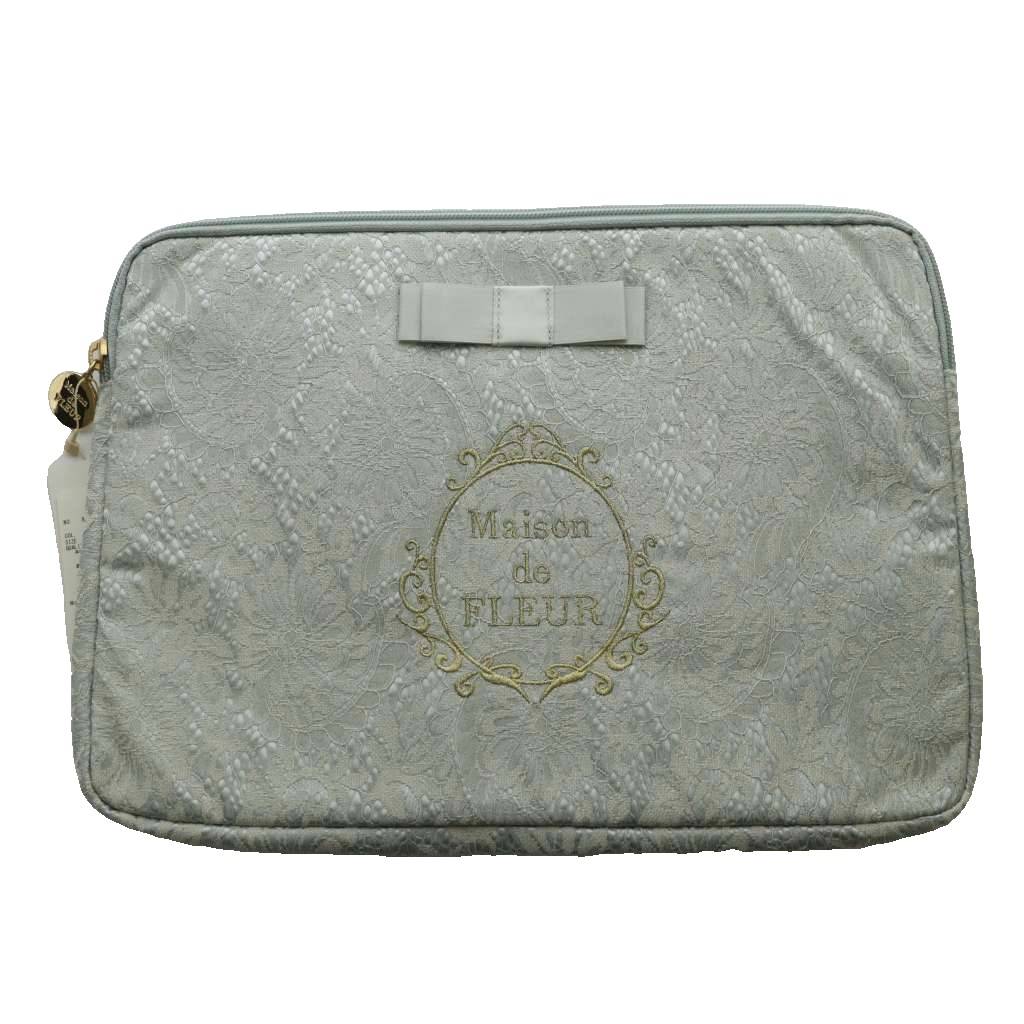 未使用品 メゾンドフルール Maison de FLEUR タグ付き レースPCケース バッグ F グレー ライトブルー /SS ■OS レディース