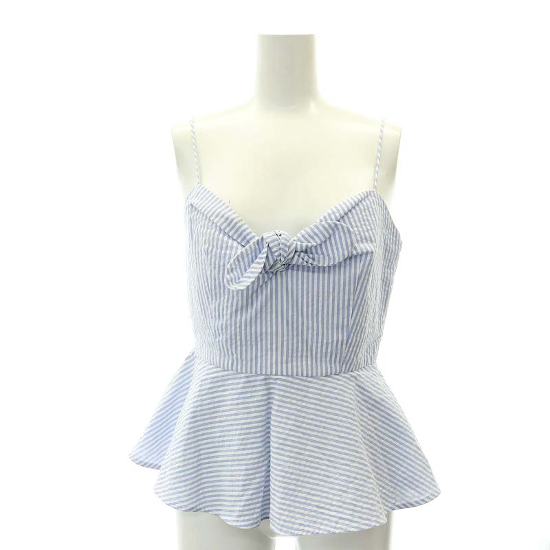 タラジャーモン TARA JARMON ストライプキャミソールトップス バックボタン コットン 36 白 ブルーラベンダー色 ホワイト /NR ■OS ■PN レディース