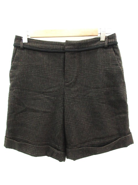 ドレステリア DRESSTERIOR パンツ ストレート ハーフ ひざ丈 ウール ロールアップ グレンチェック柄 38 茶 ブラウン /FF35 レディース