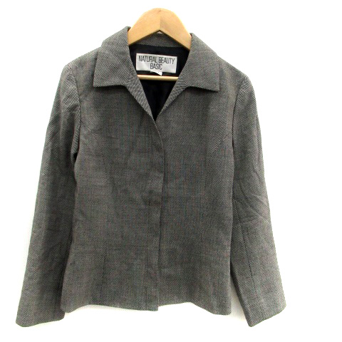 ナチュラルビューティーベーシック NATURAL BEAUTY BASIC ステンカラージャケット ショート丈 ドット柄 ウール S グレー 黒 レディース
