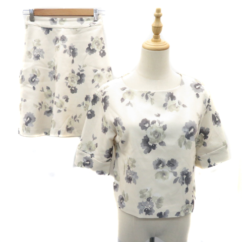 マーキュリーデュオ セットアップ 上下 カットソー 五分袖 ラウンドネック フレアスカート ひざ丈 花柄 F アイボリー レディース