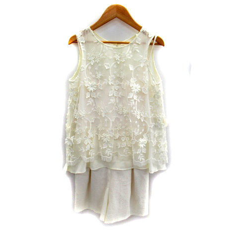 リリーブラウン セットアップ 上下 オールインワン コンビネゾン キュロット ブラウス カットソー ノースリーブ 花柄 刺繍 1 白 レディース