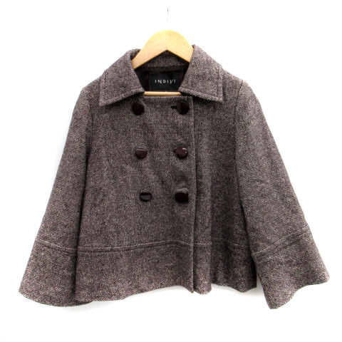 インディヴィ INDIVI ステンカラーコート ショート丈 ダブルボタン ウール シルク混 36 ブラウン 茶 /SM30 レディース