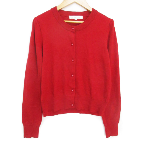 エムプルミエ アンサンブルニット カーディガン ミドル丈 カットソー 半袖 Uネック 無地 ウール混 38 赤 レッド /FF50 レディース