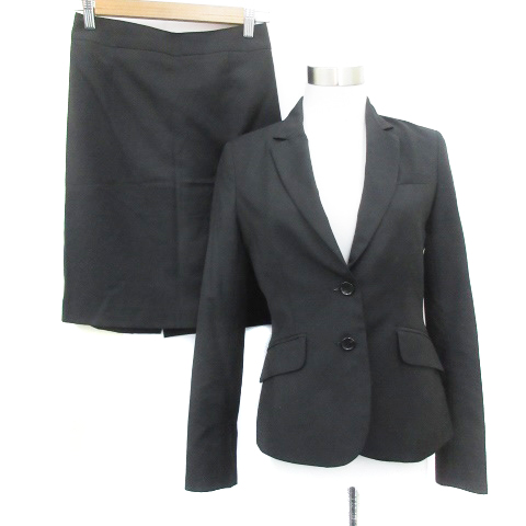 組曲 スーツ セットアップ 上下 テーラードジャケット ミドル丈 シングルボタン タイトスカート ひざ丈 ウール混 1 ブラック 黒 レディース