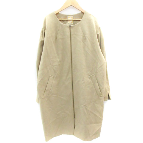 ビームスハート BEAMS HEART ノーカラーコート ロング丈 ジップアップ ベージュ /YM3 レディース