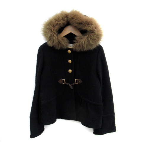 エフデ ef-de ノーカラーコート ショート丈 フード付き フォックスファー ウール 7 黒 ブラック /SM41 レディース