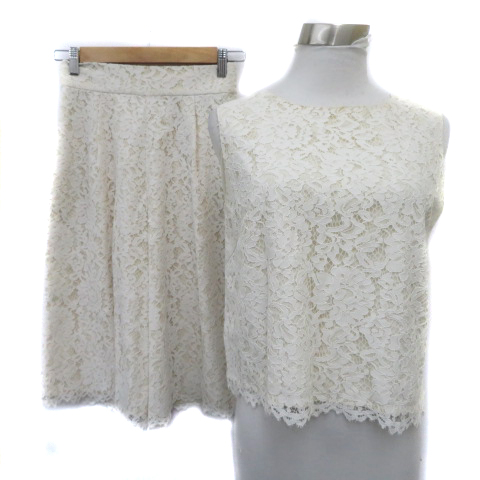 レイビームス セットアップ 上下 カットソー ノースリーブ ガウチョパンツ ワイドパンツ 七分丈 レース 0 オフホワイト レディース