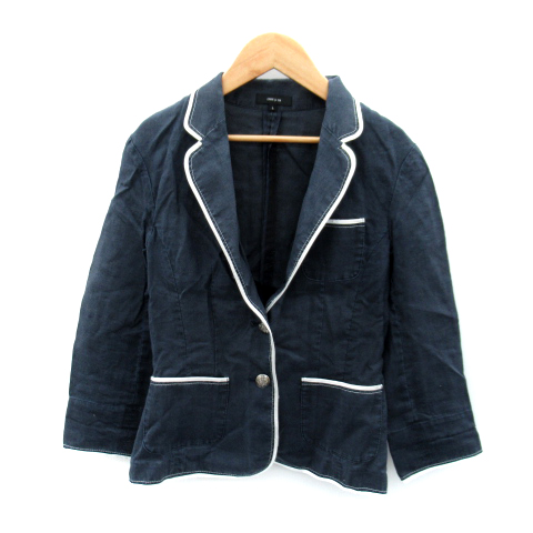 コムサイズム COMME CA ISM テーラードジャケット ミドル丈 シングルボタン 無地 リネン L 紺 ネイビー /SY44 レディース