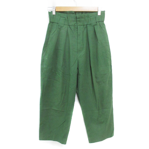 アダムエロペ Adam et Rope' タックパンツ テーパードパンツ 七分丈 麻 リネン混 S 緑 グリーン /FF1 レディース