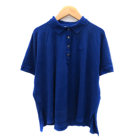 ラコステ LACOSTE ポロシャツ 半袖 ポロカラー ロゴ刺? 無地 オーバーサイズ S 青 ブルー /YK25 レディース