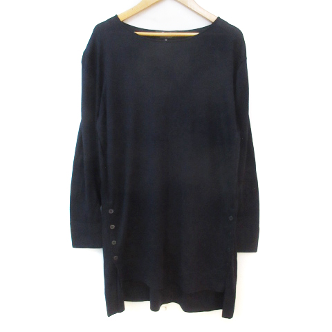 クードシャンス チュニック ニット カットソー 長袖 ラウンドネック サイドスリット 無地 38 M 紺 ネイビー /FF13 レディース