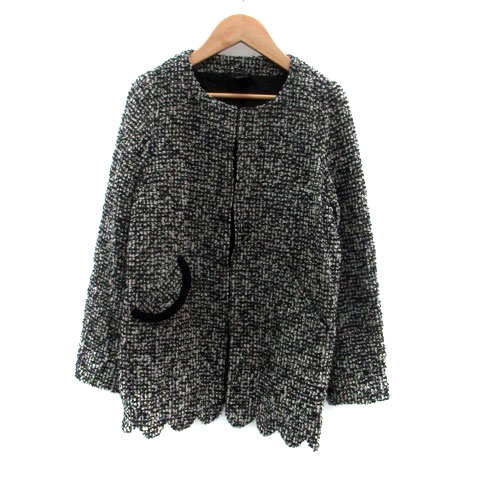 モロコバー MOROKO BAR ノーカラージャケット ミドル丈 F グレー 黒 ブラック /HO5 レディース