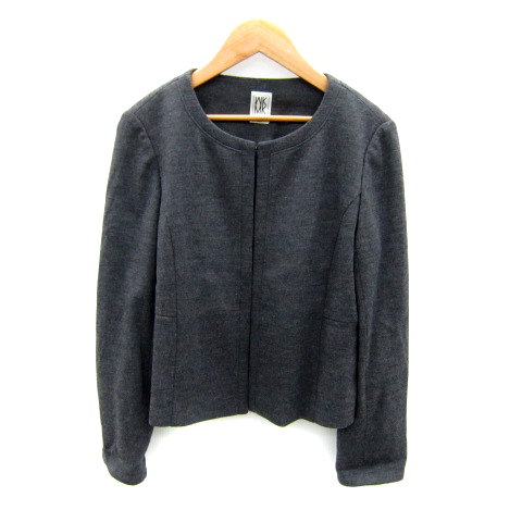 エムケー ミッシェルクラン MK MICHEL KLEIN ノーカラージャケット ミドル丈 無地 40 L グレー /SY28 レディース