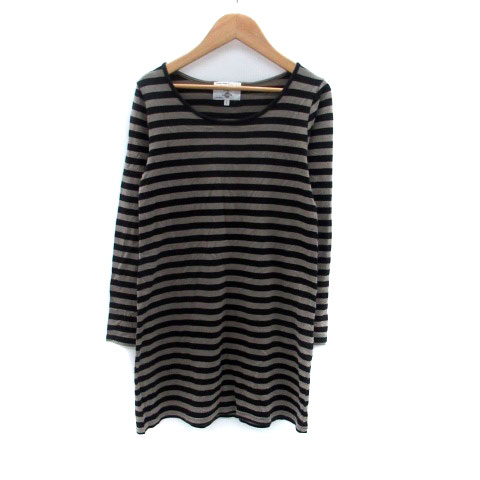アーノルドパーマー Arnold Palmer チュニック ラウンドネック 長袖 ボーダー柄 1 S グレー 黒 ブラック /HO35 レディース