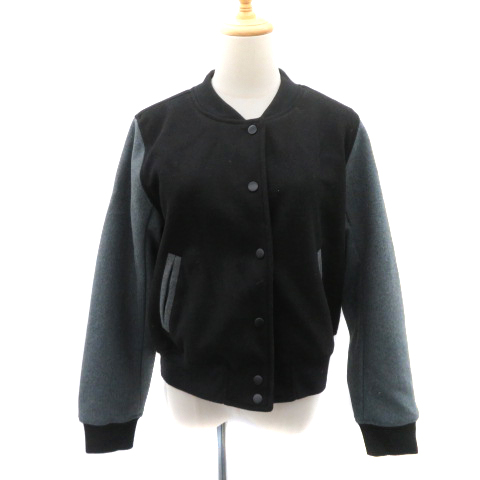 アースミュージック&エコロジー スタジャン スタジアムジャンパー ブルゾンジャケット ミドル丈 F 黒 ブラック /YK4 レディース