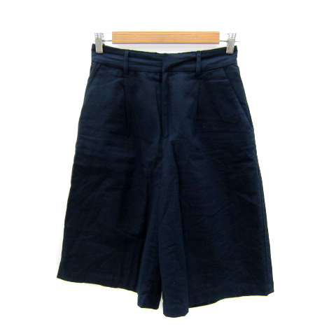 オペークドットクリップ OPAQUE.CLIP ガウチョパンツ ワイドパンツ 七分丈 無地 リネン混 麻 38 M 紺 ネイビー /SY20 レディース