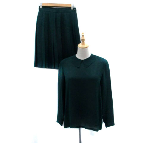 バジーレ BASILE 28 セットアップ 上下 ブラウス カットソー ステンカラー 長袖 プリーツスカート ひざ丈 38 M モスグリーン レディース