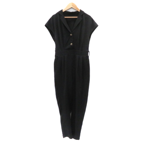 スプレイプレミアム SPRAY PREMIUM オールインワン コンビネゾン アンクル丈 半袖 オープンカラー M 黒 ブラック /YK12 レディース