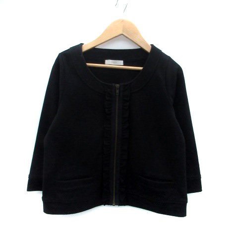 グローブ grove ノーカラージャケット ミドル丈 フリル M 黒 ブラック /HO21 レディース