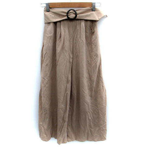 リエンダ rienda ガウチョパンツ ワイドパンツ 七分丈 スリット ベルト付き S ベージュ /SM15 レディース