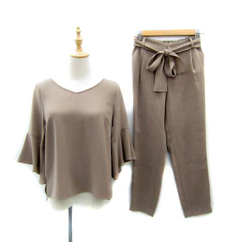ジャスグリッティー セットアップ 上下 ブラウス カットソー 七分袖 チャーム付 テーパードパンツ リボンベルト 1 ブラウン レディース