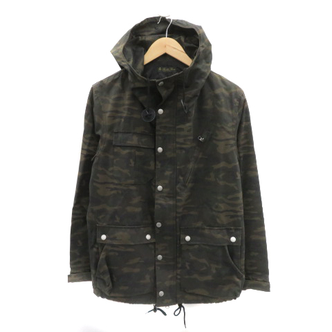 ナノユニバース マウンテンパーカー ジャケット ミドル丈 ジップアップ 迷彩柄 カモフラ柄 オーバーサイズ M カーキ /YK48 メンズ