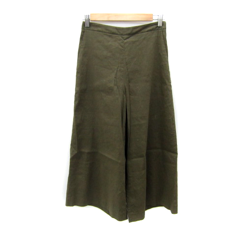 イネド INED ガウチョパンツ ワイドパンツ 七分丈 無地 リネン 麻 9 カーキ /SY8 レディース