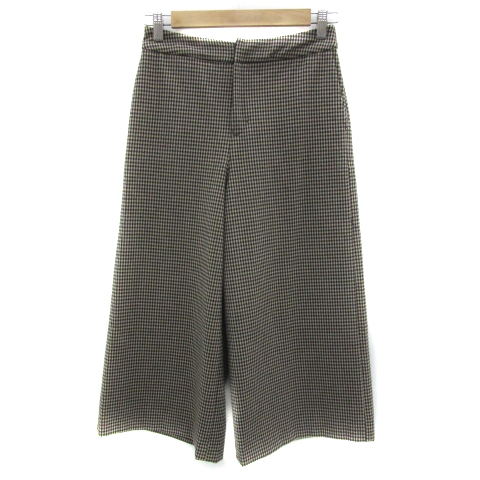 アマカ AMACA ガウチョパンツ ワイドパンツ 七分丈 チェック柄 36 S ベージュ 黒 ブラック /YS9 レディース