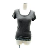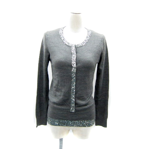 ルスーク アンサンブルニット カーディガン ミドル丈 ラウンドネック カットソー 半袖 スパンコール装飾 38 M グレー /SY6 レディース