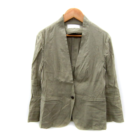 コラージュ ガリャルダガランテ COLLAGE GALLARDAGALANTE ノーカラージャケット ミドル丈 無地 麻 リネン F カーキ /SY37 レディース