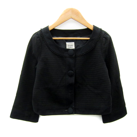 プライベートレーベル Private label ノーカラージャケット ショート丈 ボーダー柄 七分袖 S 黒 ブラック 茶 ブラウン レディース