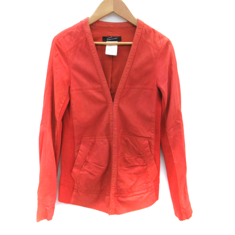 スタニングルアー STUNNING LURE レザージャケット 革ジャン ミドル丈 リブ 切替 ノーカラー 36 S オレンジ /SM33 レディース