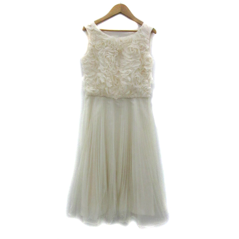 マーキュリーデュオ パーティードレス ワンピース ノースリーブ ラウンドネック 花モチーフ チュール プリーツ アイボリー レディース