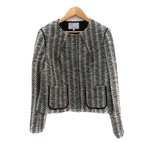ホメオスタイル by HOMEOSTYLE ノーカラージャケット ミドル丈 ツイード 40 L マルチカラー 黒 ブラック /YK5 レディース