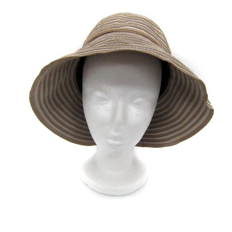 シゲマツ 帽子 クロッシェハット つば広 ボーダー柄 56cm〜57.5cm ベージュ 茶 /SY49 レディース