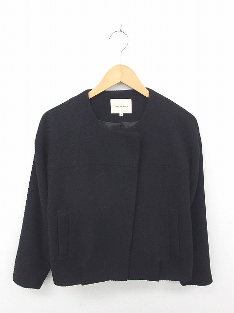 デビュー ド フィオレ Debut de Fiore ジャケット アウター ノーカラー ジップアップ 厚手 無地 38 黒 ブラック /TT19 レディース