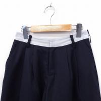 | 実寸サイズ | ウエスト:約64cm もも幅:約41.5cm 裾幅:約46cm 股上:約32cm 股下:約35cm |