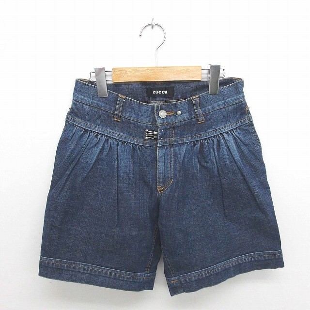ズッカ zucca パンツ ハーフ ショート デニム ウォッシュ加工 ジップフライ S 紺 インディゴ /TT47 レディース