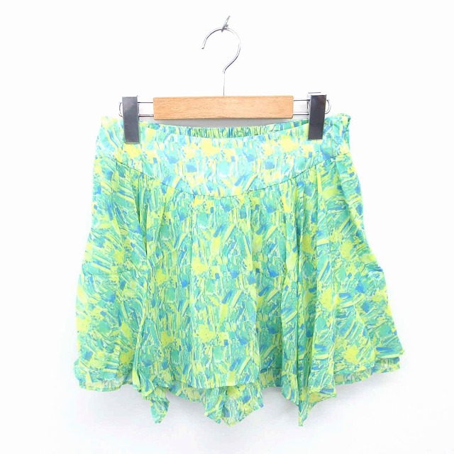 未使用品 インデックス INDEX タグ付き キュロット パンツ ショート 総柄 薄手 サイドジップ M グリーン 緑 /TT1 レディース