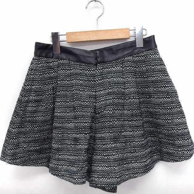 ツモリチサト TSUMORI CHISATO パンツ ショート フレア 柄 ウエストレザー 2 ブラック 黒 ホワイト 白 /FT32 レディース