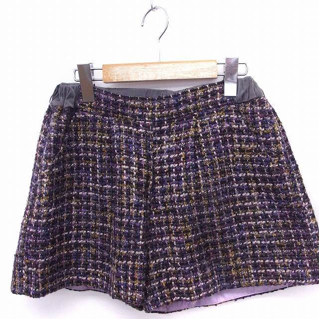キュー Q パンツ ツイード ショート ウール 2 パープル 紫 /FT11 レディース