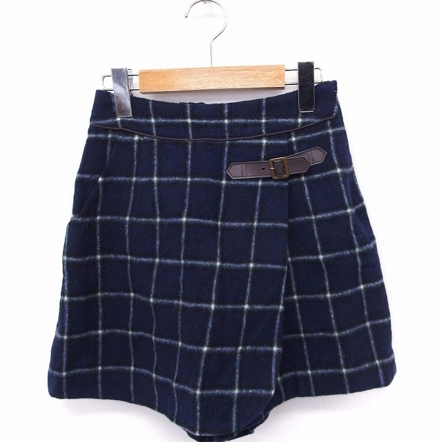 ルゥデルゥ Rew de Rew パンツ キュロット ラップ ショート チェック ウール 34 ネイビー 紺 /FT27 レディース